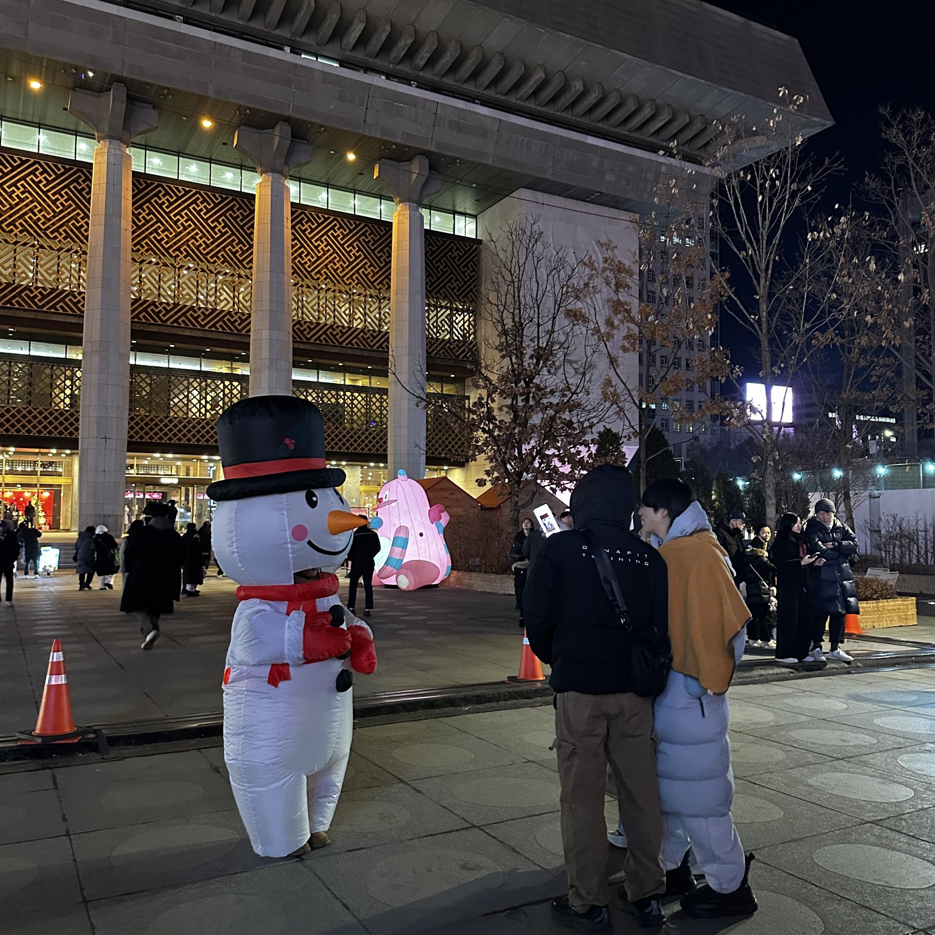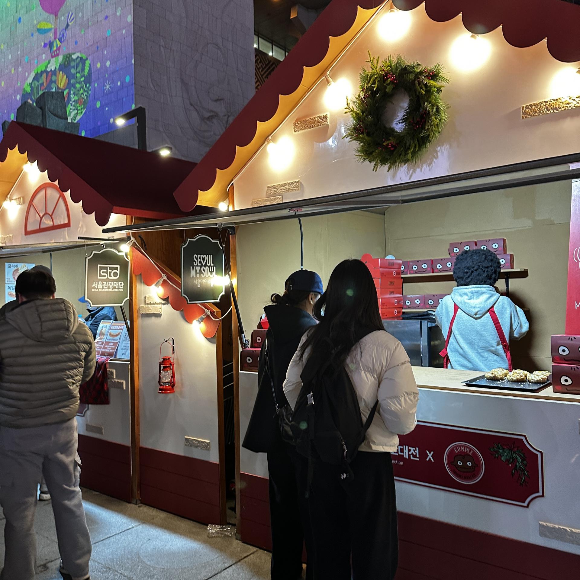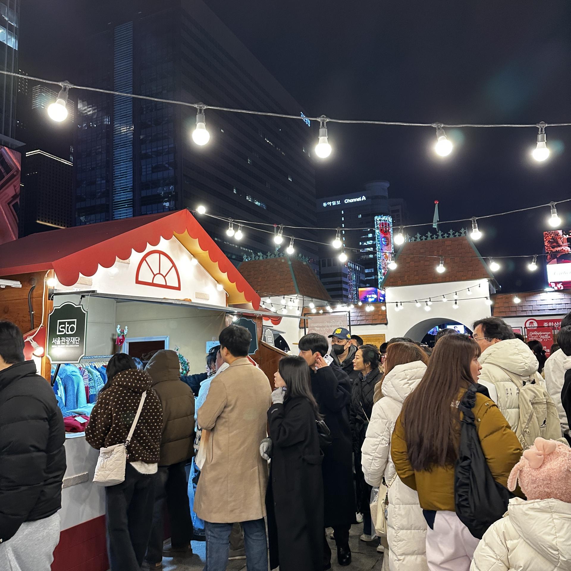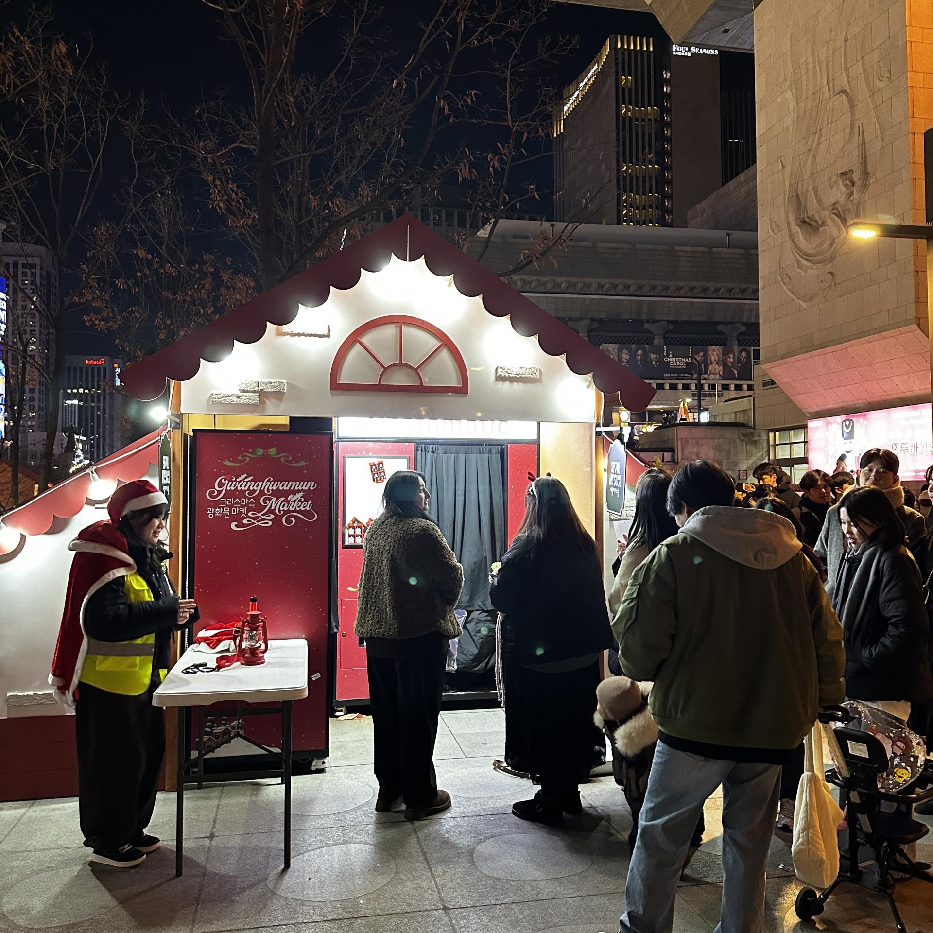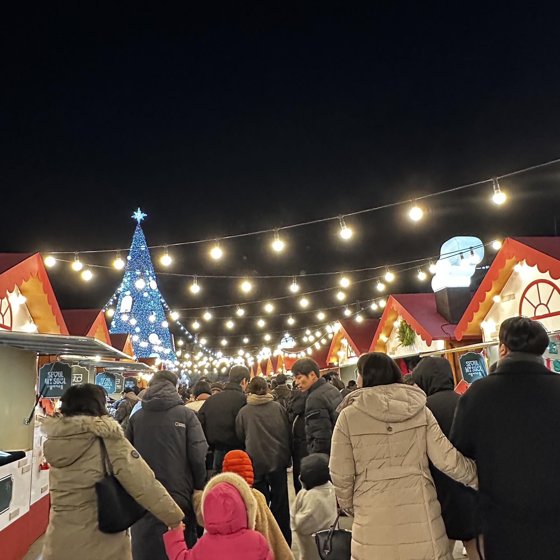 놀이광장에서는 루돌프 회전목마가 반짝이며 천천히 돌고 있었다.아이의 웃음소리가 음악보다 먼저 귀에 들어왔다. 핫초코를 나눠 들고 서 있는 가족, 간식을 사기 위해 줄을 선 부모의 뒷모습, 회전목마가 멈출 때마다 커지는 환호성까지.