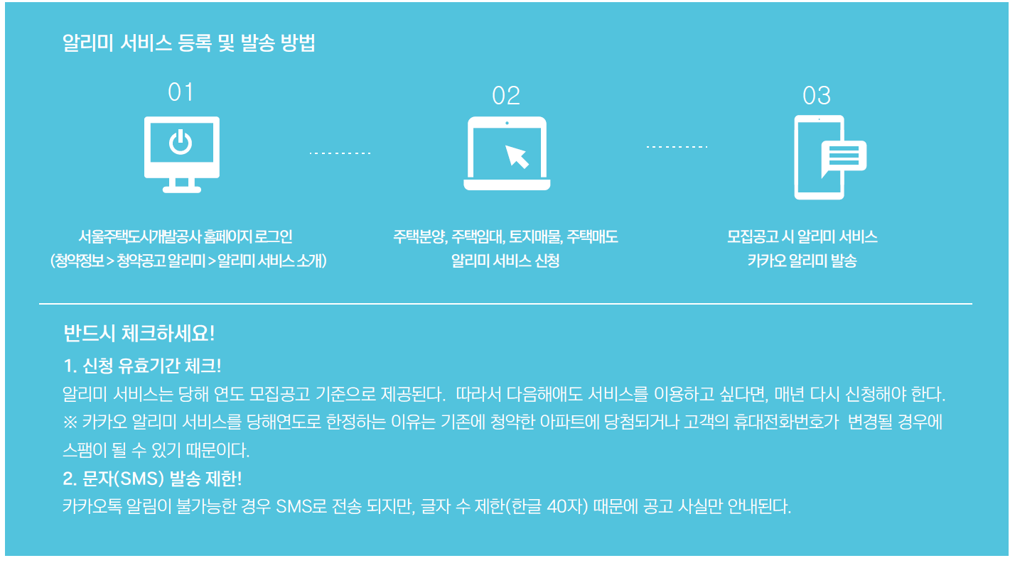 이런 번거로움을 해결해 주는 ‘서울주택도시개발공사 청약공고 알리미’ 서비스를 소개한다.